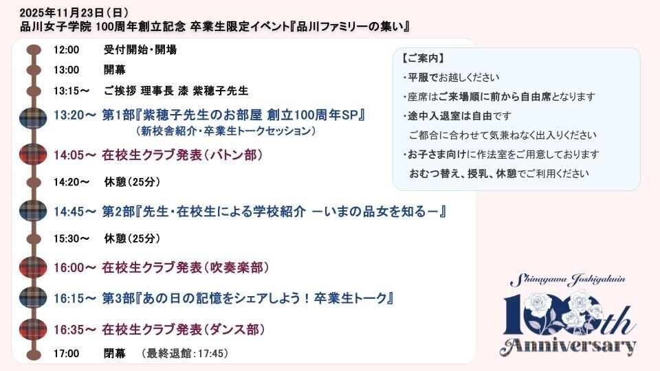 品川女子学院 創立100周年記念 卒業生限定イベントのご案内