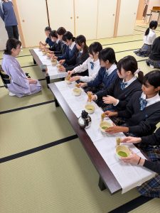 中等部校長 お茶の時間(20251015) 2025.10.15 先週から始まった中2茶道の時間。 2回目の今日から早速お菓子をいただき、お茶を点てます。 そして、作法に則り、自分で点てた茶をいただきます。 私も一緒にお茶を点てました。 心洗われる、毎年楽しみにしている授業です。 (シャカシャカ) 2025.10.15 [中等部校長]
