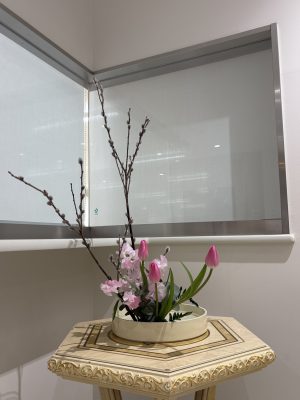 2年生の活け花の授業では春らしい素材を扱っています。寒い日が続きますが、暖かい春が待ち遠しいですね。