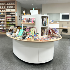 今回のブックカバーは色に悩んで、カウンター当番をしていた図書委員に意見を聞き、2種になりました。