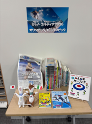 図書室日記 オリンピック・パラリンピック 2026.2.16 オリンピックが開幕しましたね! 図書室でも関連本を展示しています! ティナとミロも旗を振って応援中です! 図書室 岩崎 2026.2.16 [図書室日記]